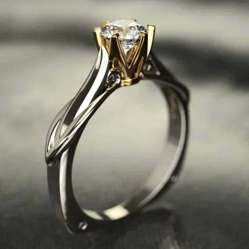 2025 Uusi kaksivärinen hääsormus zirkoniakivillä