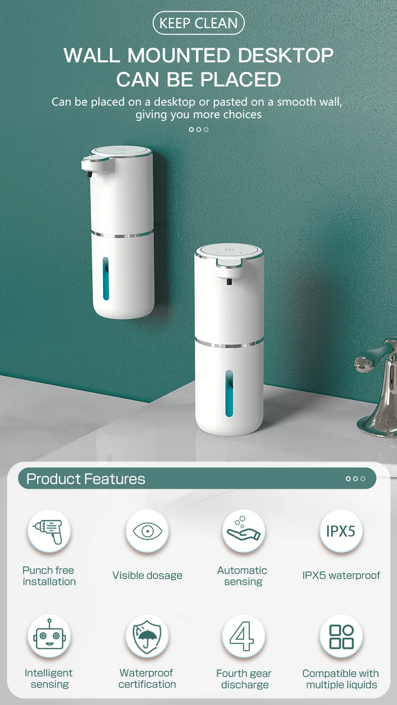 380ML Touchless IPX5 Waterproof 4-Gears Adjustable Foam/Gels Automatic Sense Soap Dispenser Electric Hand Dish Washing Machine