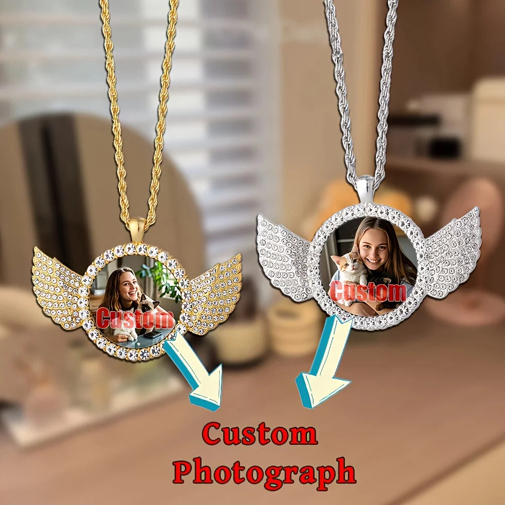 Ainutlaatuinen Räätälöity Enkelin Siipi Valokuvakaulakoru