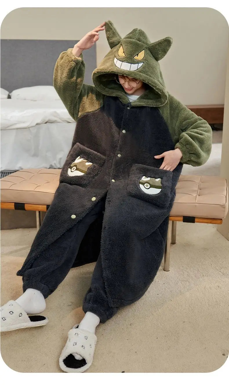 Tämä hauska ja mukava Gengar Pokemon -yöasu on täydellinen valinta kaikille Pokemon-faneille! Pehmeä korallifleece-materiaali ja paksunnettu rakenne pitävät sinut lämpimänä kylminä talvi-iltoina. Hupullinen malli ja söpö Gengar-hahmo tekevät tästä yöasusta sekä käytännöllisen että tyylikkkään.