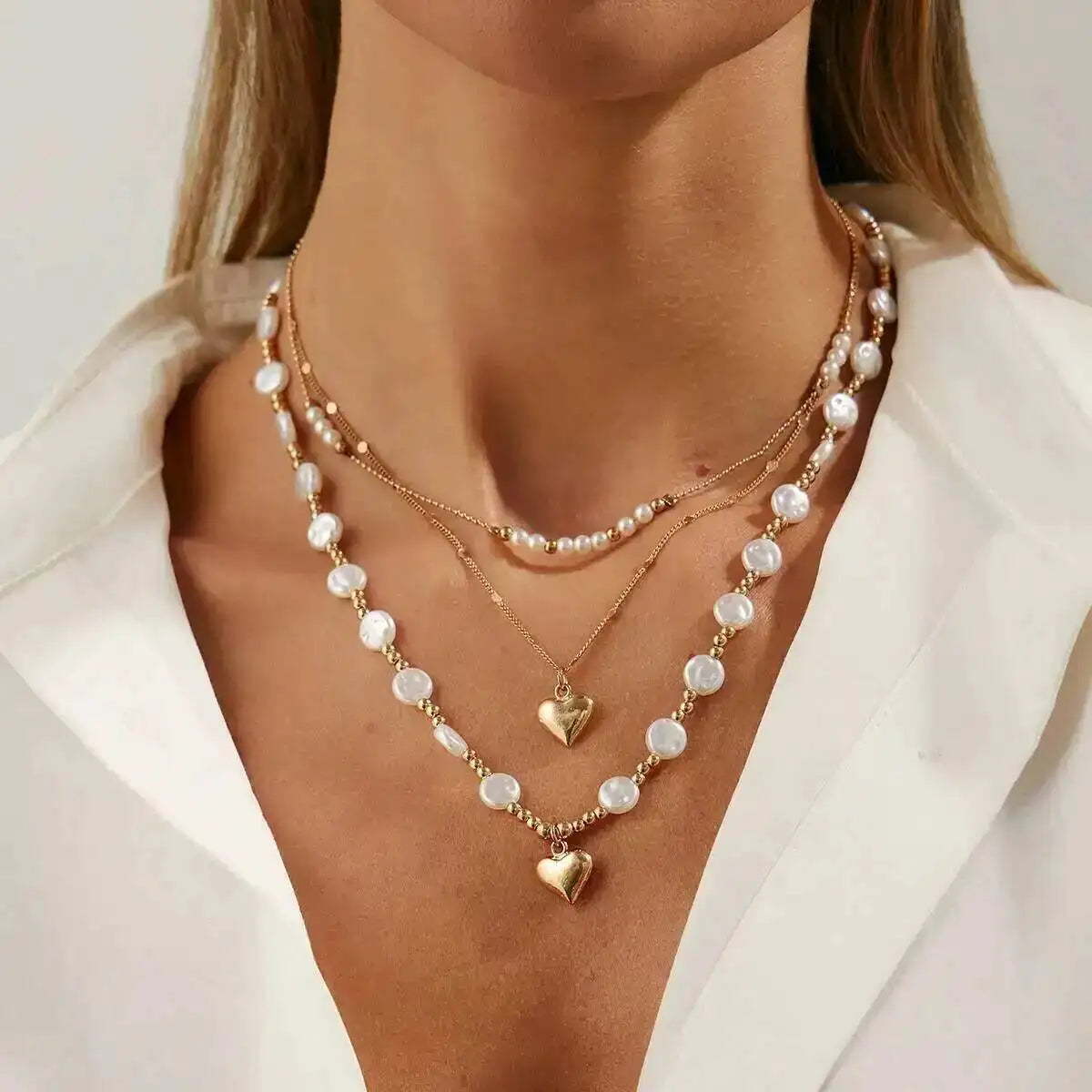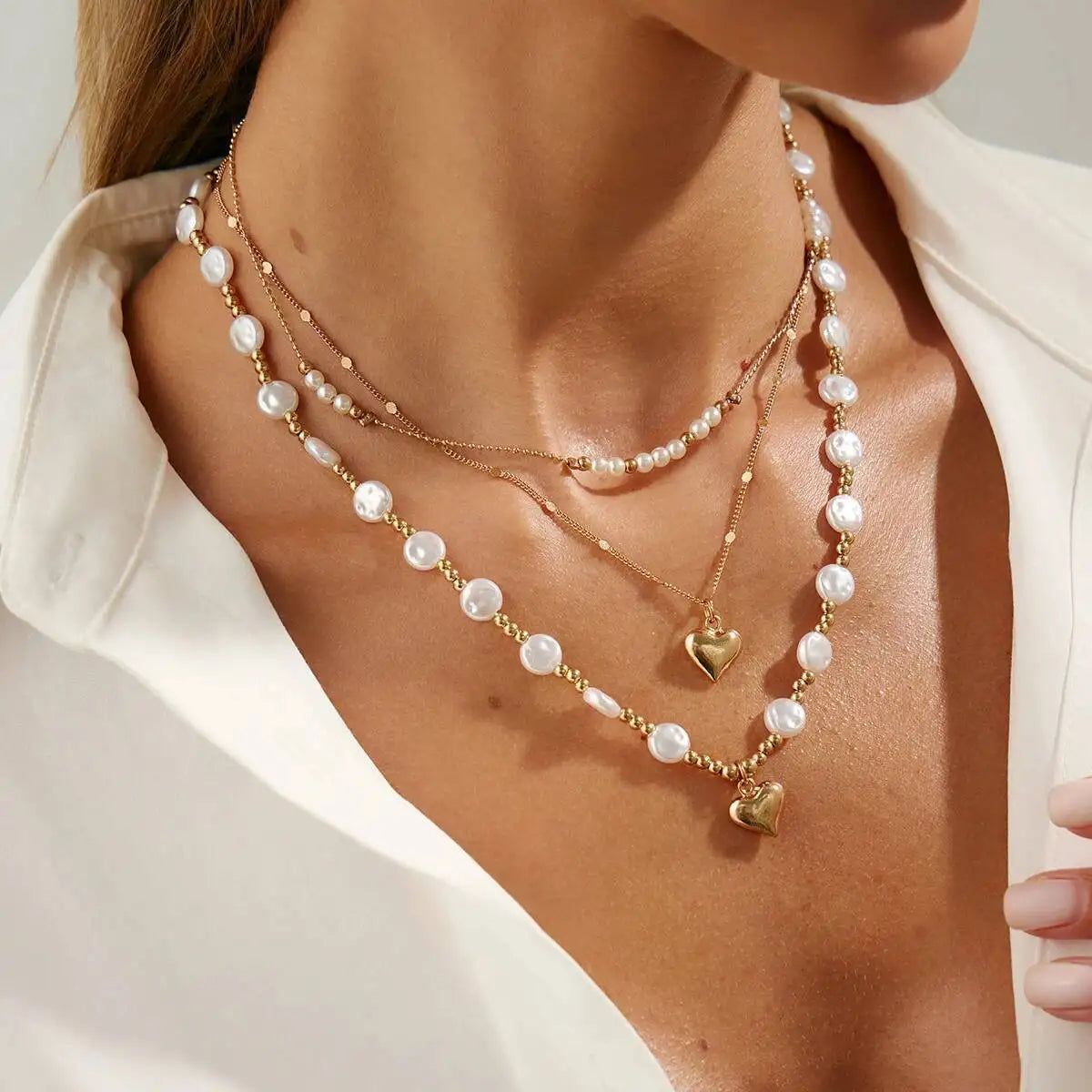 Tämä upea 3 kappaleen helmikaulakorusetti on täydellinen valinta naisille, jotka rakastavat elegantteja ja romanttisia koruja. Setti sisältää kolme kaunista kaulakorua: helmichoker, retro-tyylinen sydänriipus ja hieno solisluuketju. Voit käyttää niitä yhdessä tai erikseen luoden erilaisia tyylejä. Täydellinen hääkoru tai lahja rakkaalle ihmiselle.