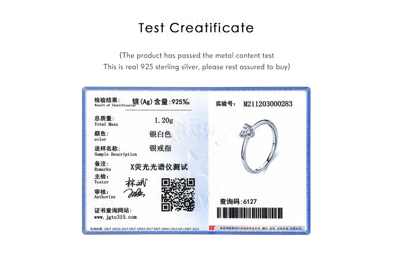 Tämä upea naisten sormus on valmistettu aidosta 925 sterlinghopeasesta, joka takaa korkean laadun ja kestävyyn. Kaunis yksinkertainen sydänkuvio on koristeltu AAAAA-luokan zirkoniakivellä, joka kimaltaa kuin aito timantti. Tämä on täydellinen valinta, kun haluat yhdistää romantiikan ja eleganssin.