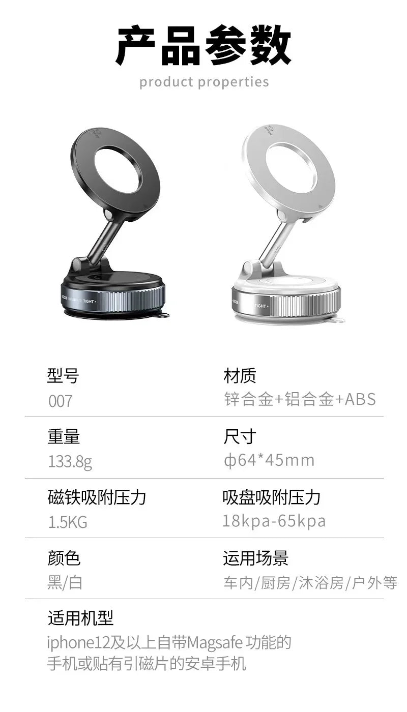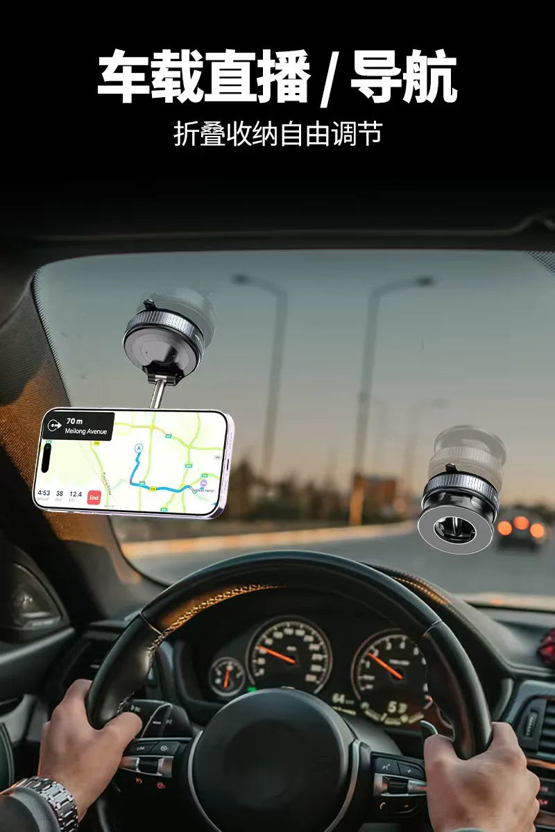 Magneettinen Auton Puhelinpidike – Tyhjiöimukuppi, Säädettävä Kulma, Ei Työkaluja – Navigointiin