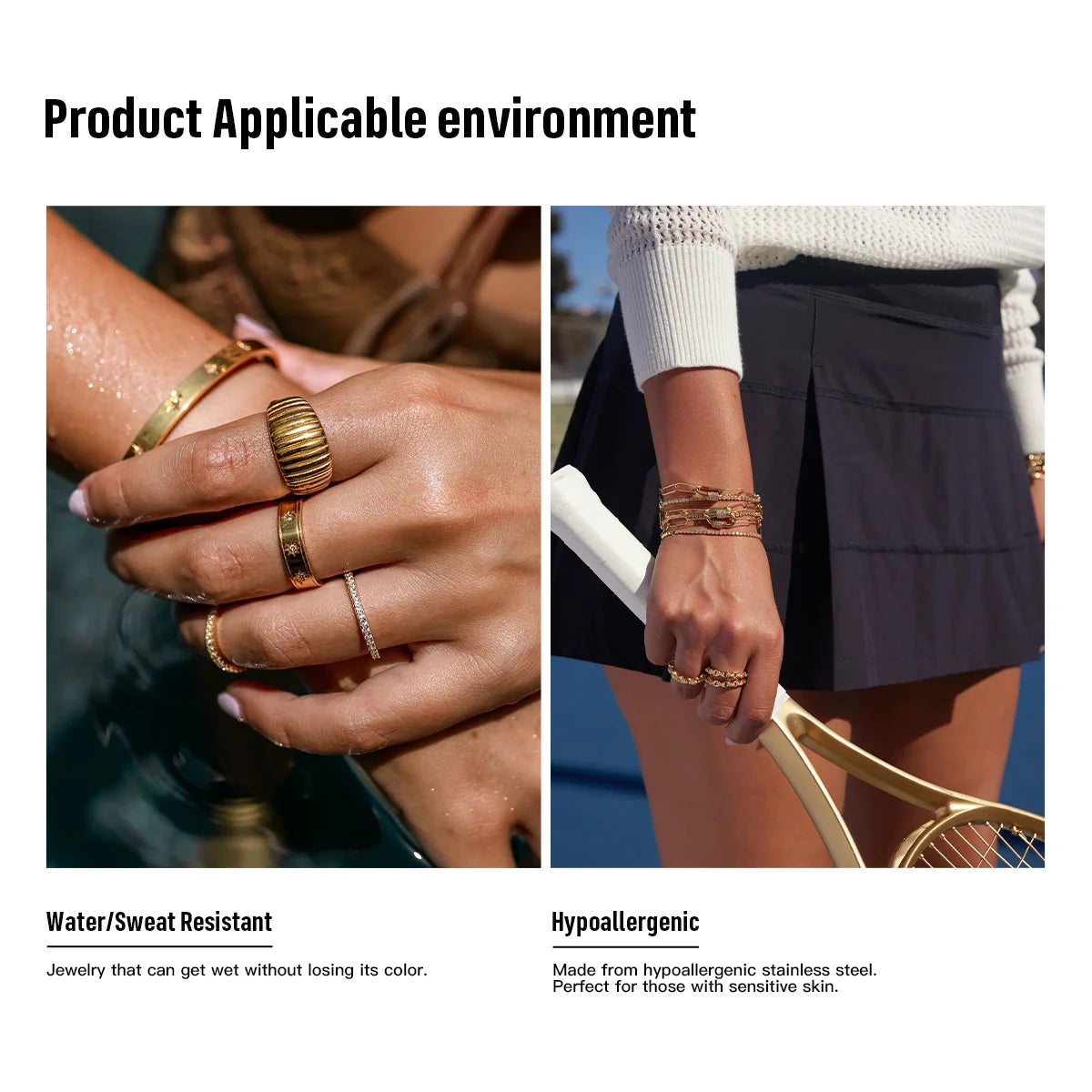 - 18K-kullattu ruostumaton teräs – Laadukas kultapinnoite, kestävä ja hypoallergeeninen