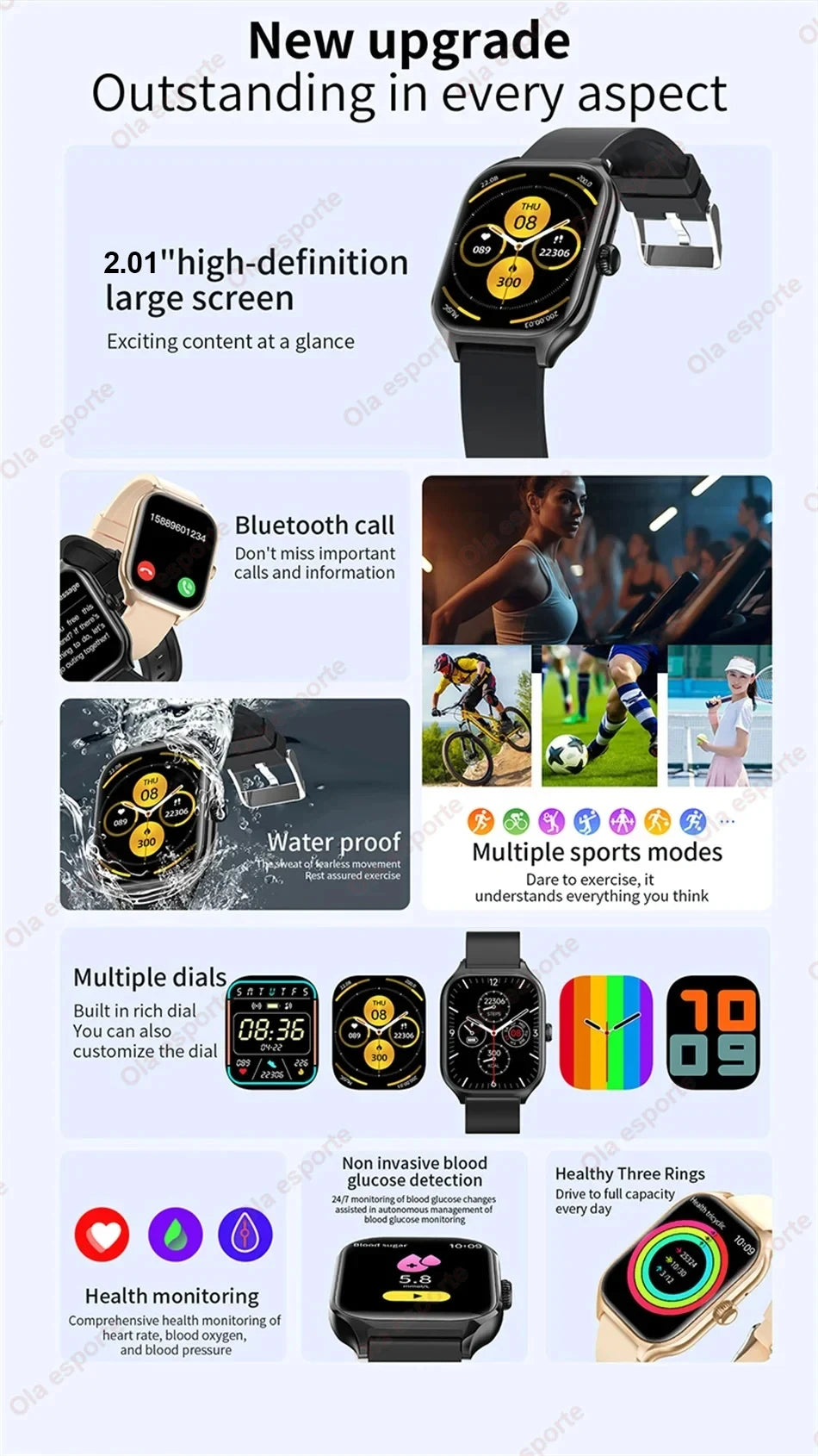 2025 Älykello 2.01" HD-näyttö – Puhelut, Viestit, Urheilutilat ja DIY-kellotaulut