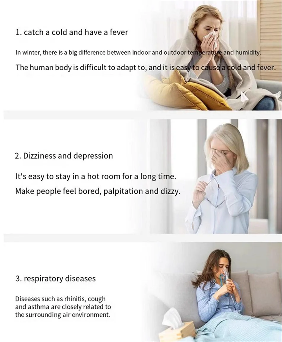 Digitaalinen anturi mittaa huoneen lämpötilan ja kosteuden reaaliajassa kristallinkirkkaalla LCD-näytöllä. Seuraa sisäilman laatua ja luo optimaaliset olosuhteet terveydellesi ja hyvinvoinnillesi – erityisen tärkeää talvikuukausina, kun sisäilma on usein liian kuivaa.