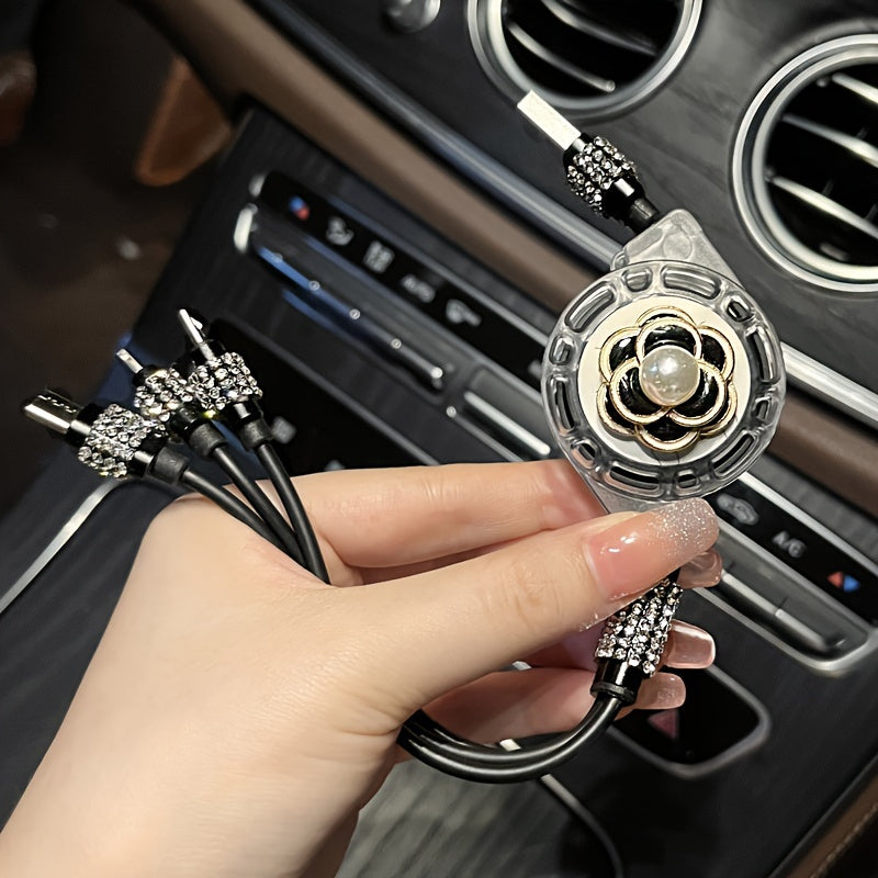 1 pc DURCORD 3-in-1 fashionable USB charging cable with rhinestones