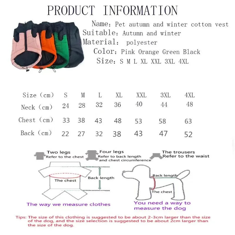 This high-quality dog winter vest is the perfect choice for autumn and winter. The windproof material protects against cold winds, while the warm padded structure keeps your pet comfortable during outdoor activities. The practical polo collar protects the neck and nape area, and the vest design allows for free movement. Suitable for small, medium and large dogs.