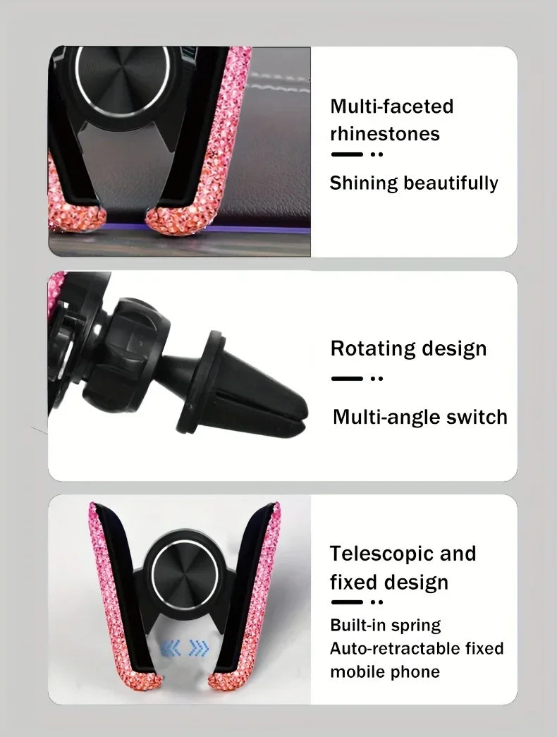 Timanttikoristeinen Auton Puhelinpidike - Ilmanvaihtoaukon Kiinnike Kristallilla