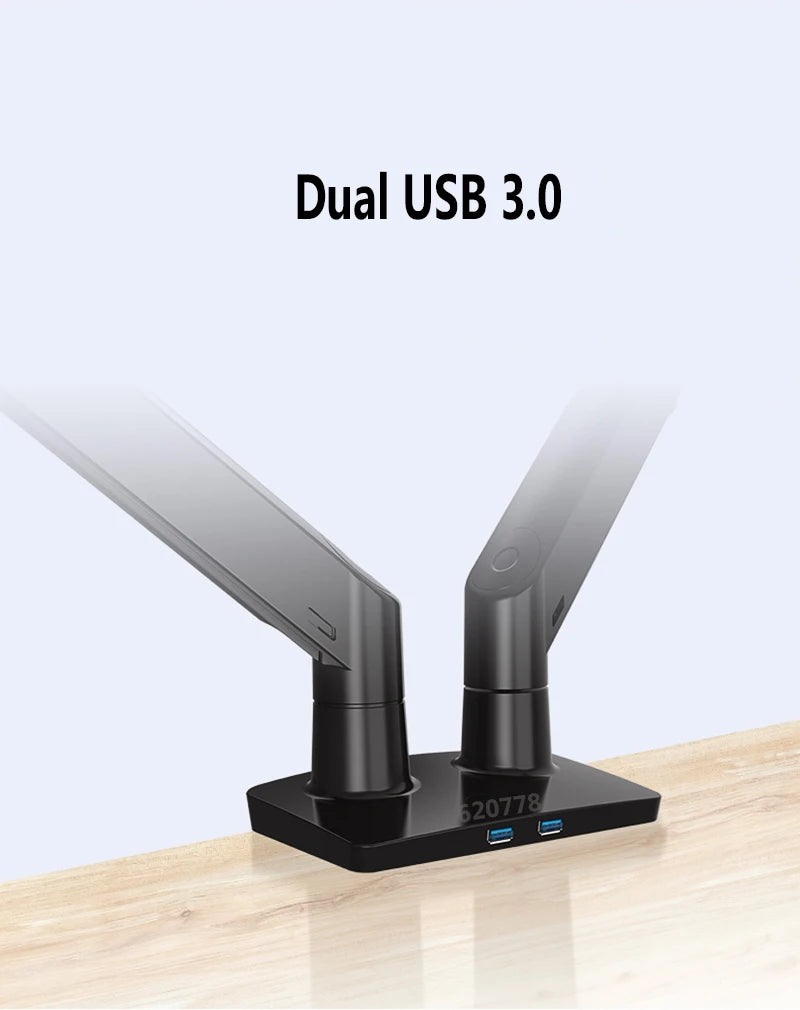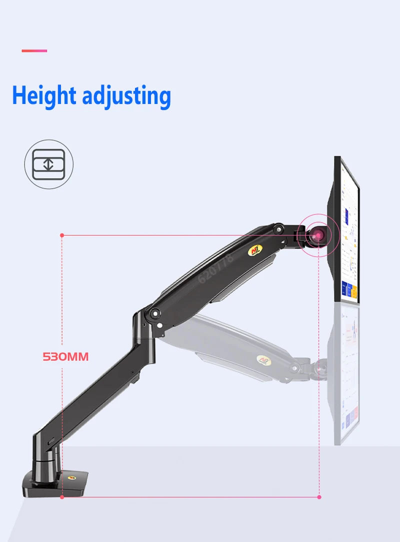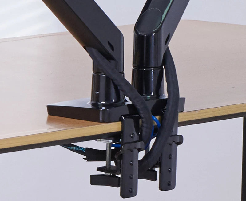 Sujuva kaasujousijärjestelmä tekee näyttöjen säätämisestä vaivattoman yhden käden liikkeellä. Säädä korkeutta, kallistusta, kiertosuuntaa ja syvyyttä täydellisen katselukulman löytämiseksi. Jokainen näyttö liikkuu itsenäisesti, antaen sinulle täyden vapauden räätälöidä asetukset juuri sinulle sopiviksi.