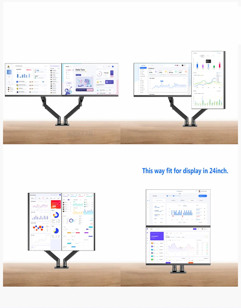 Korkealaatuinen alumiiniseos takaa kestävyyden ja tyylin. Tukeva rakenne kantaa turvallisesti kaksi näyttöä, joista kumpikin voi painaa 3-12 kg. Yhteensopiva 22-32 tuuman LCD- ja LED-näyttöjen kanssa.
