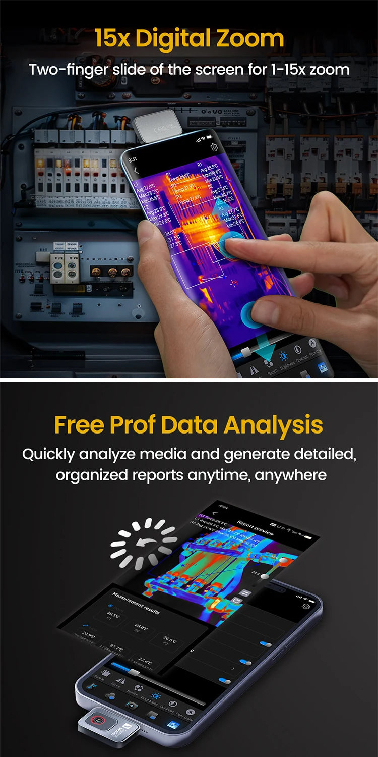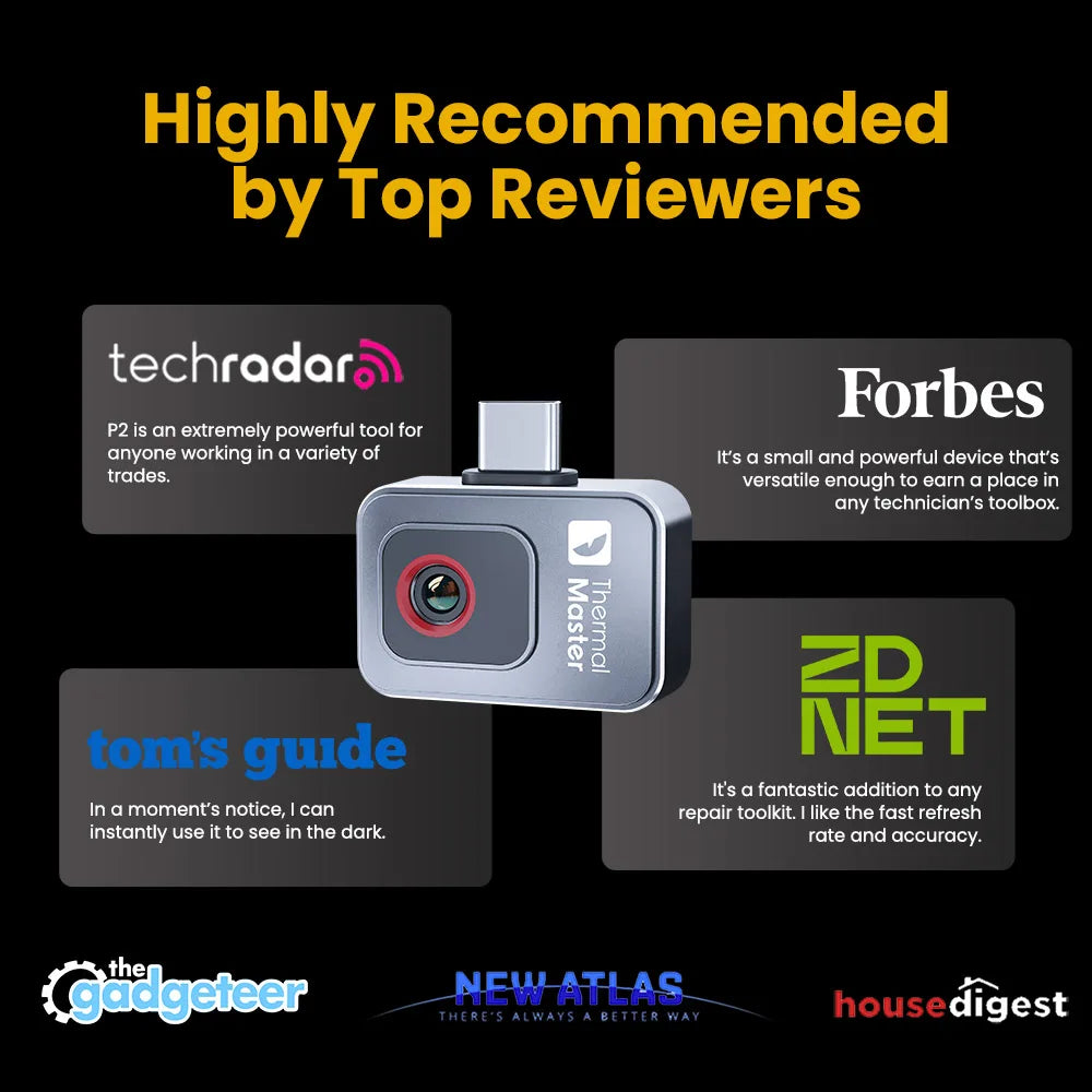The P2 thermal camera turns your Android phone into a powerful thermal imaging device. The high 512×384 resolution and wide 600°C temperature range make this the perfect tool for professional use in construction, electrical work, HVAC installations and home maintenance. It comes with a handy portable case for safe storage and transport.