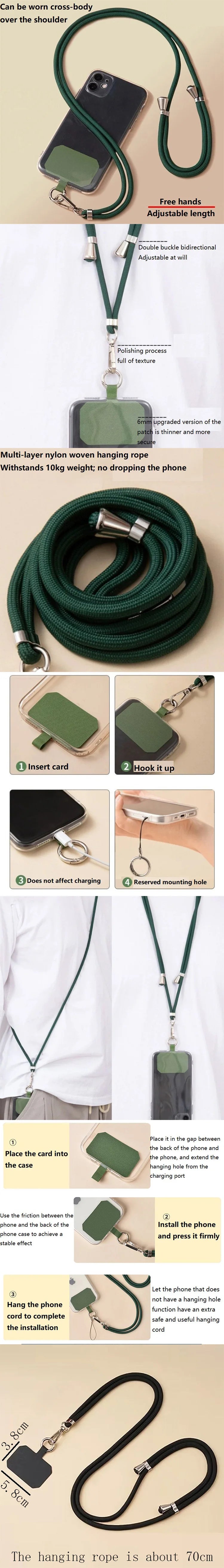 Unohda puhelimen etsiminen laukun pohjalta tai huoli sen putoamisesta. Kaulanauha pitää puhelimesi turvallisesti mukana koko päivän – täydellinen festivaaleille, ostoksille, matkustamiseen tai päivittäiseen käyttöön.