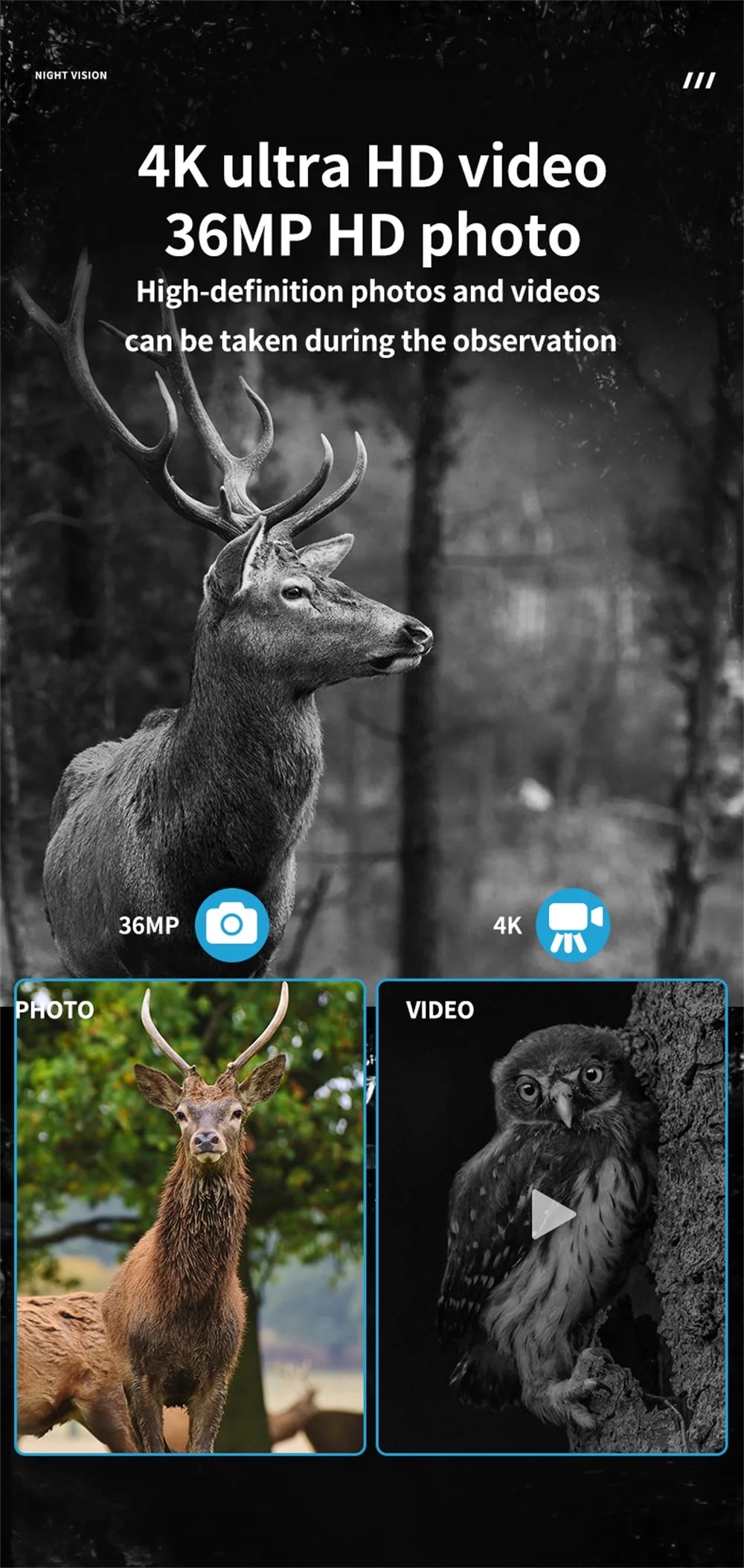 Ponbos NV2180 4K UHD Taktinen Yönäkökiikarit on ammattitason laite metsästäjille, luonnontutkijoille ja seikkailunhaluisille. Tämä huipputeknologialla varustettu yönäkölaite yhdistää 4K-videotallennuksen, 36MP-kameran ja tehokkaan infrapunavalaistuksen – näe ja tallenna kaikki yön salaisuudet kristallinkirkkaalla tarkkuudella.