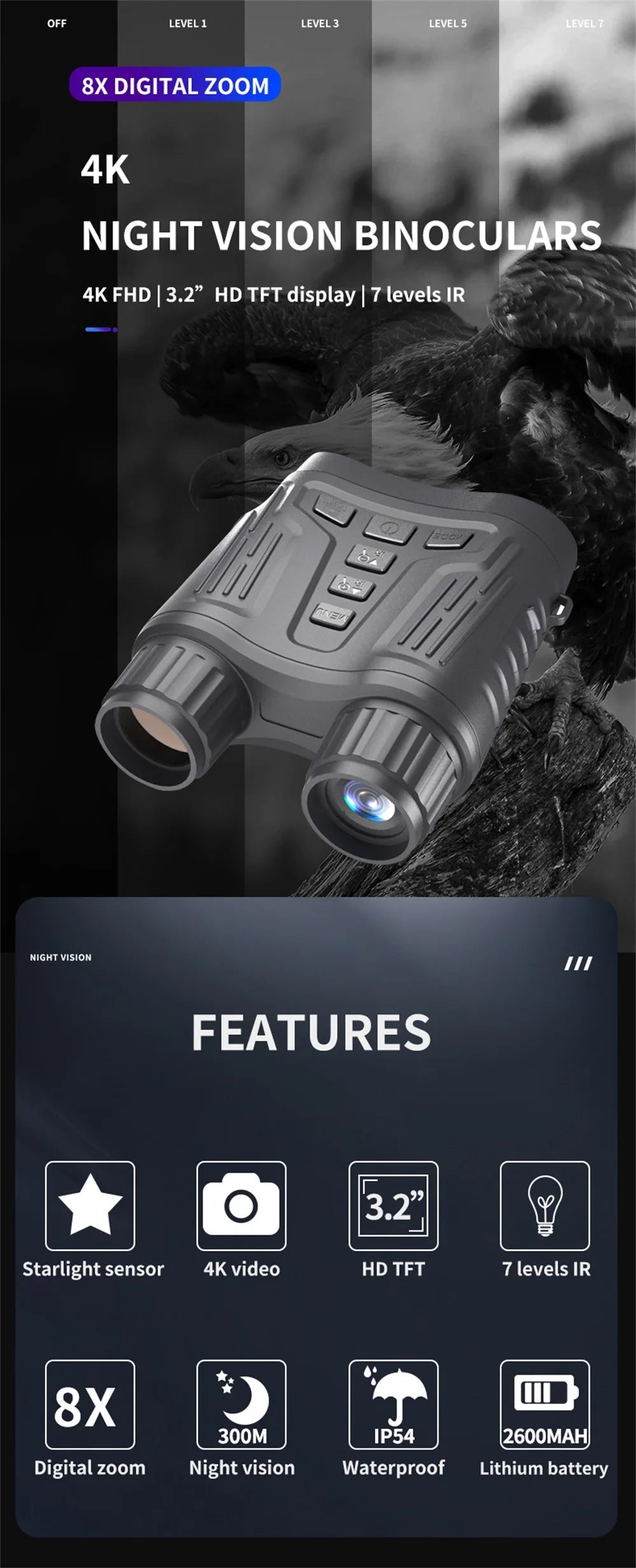 Ota yö haltuun ja koe luonto aivan uudella tavalla. Tilaa Ponbos NV2180 4K UHD Taktinen Yönäkökiikarit tänään ja näe mitä pimeys kätkee!