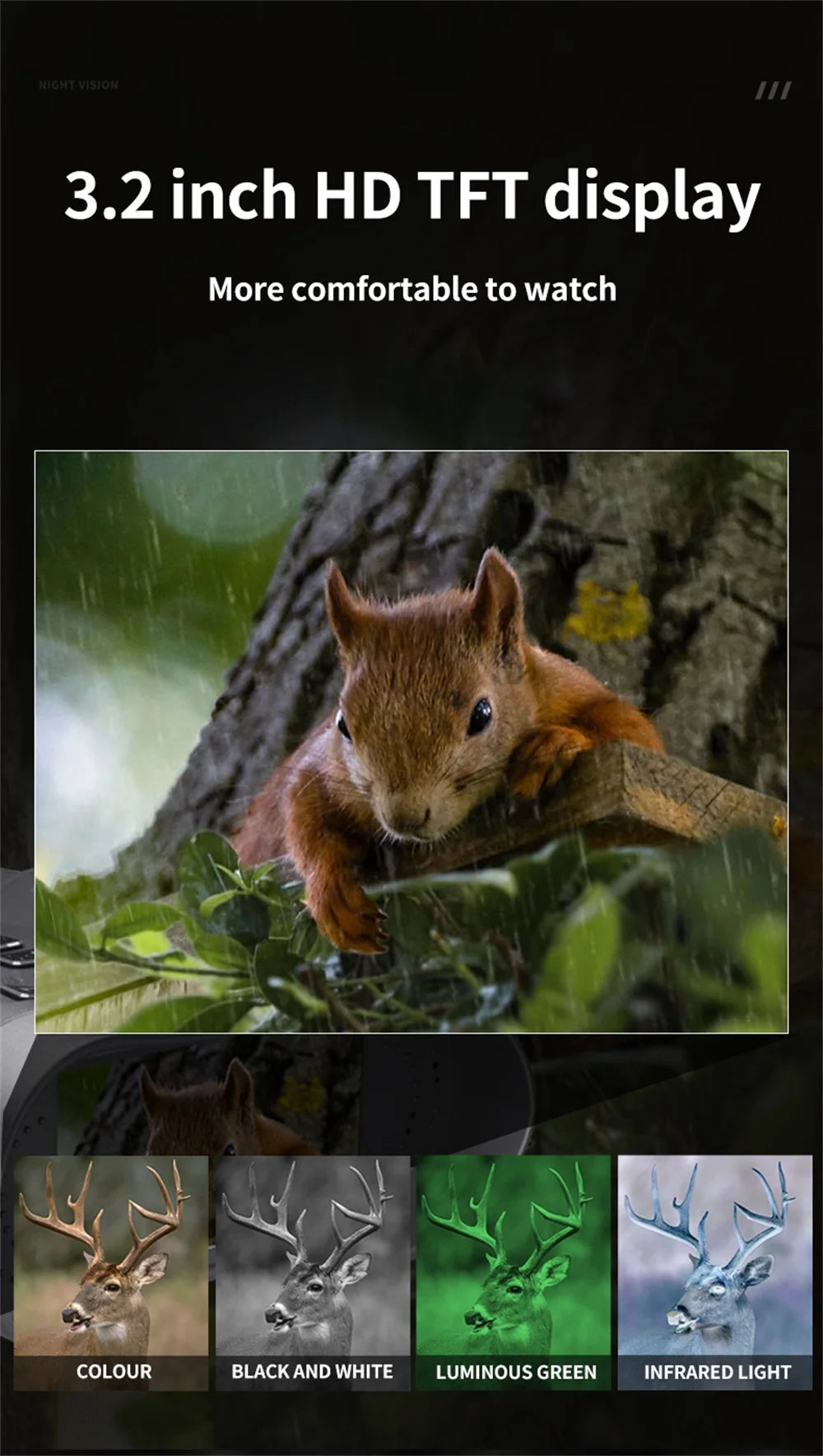 Metsästys: Tarkkaile riistaa pimeässä ilman että paljastetaan sijaintiasi. Tallenna metsästyshetkesi ja analysoi eläinten käyttäytymistä.