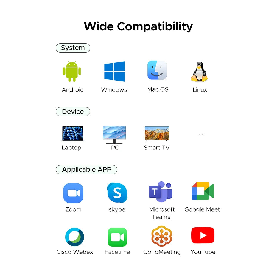 - Yhteensopiva Zoom, Teams, Skype, OBS kanssa
