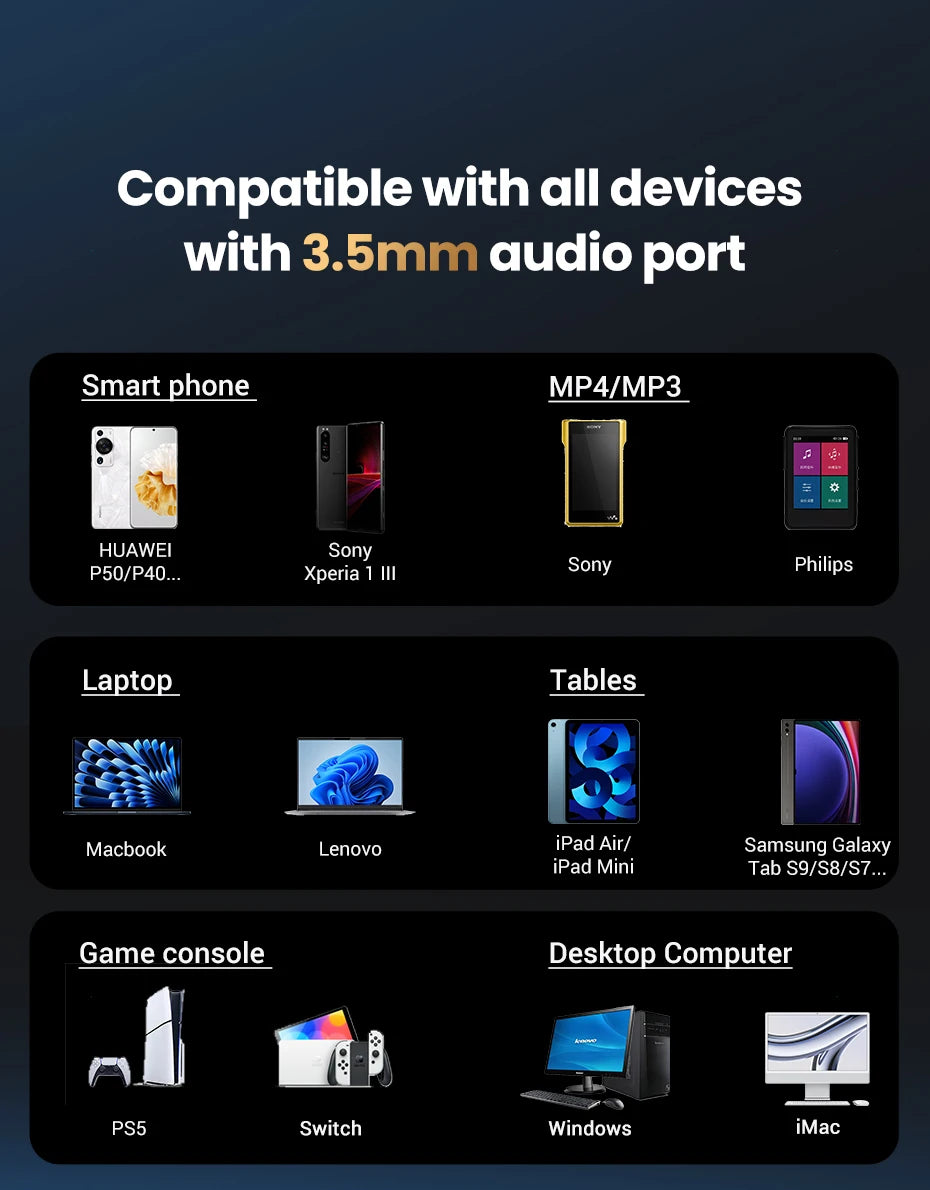 Perfect for work, school and leisure. Enjoy traveling, exercising or relaxing with great sound quality.