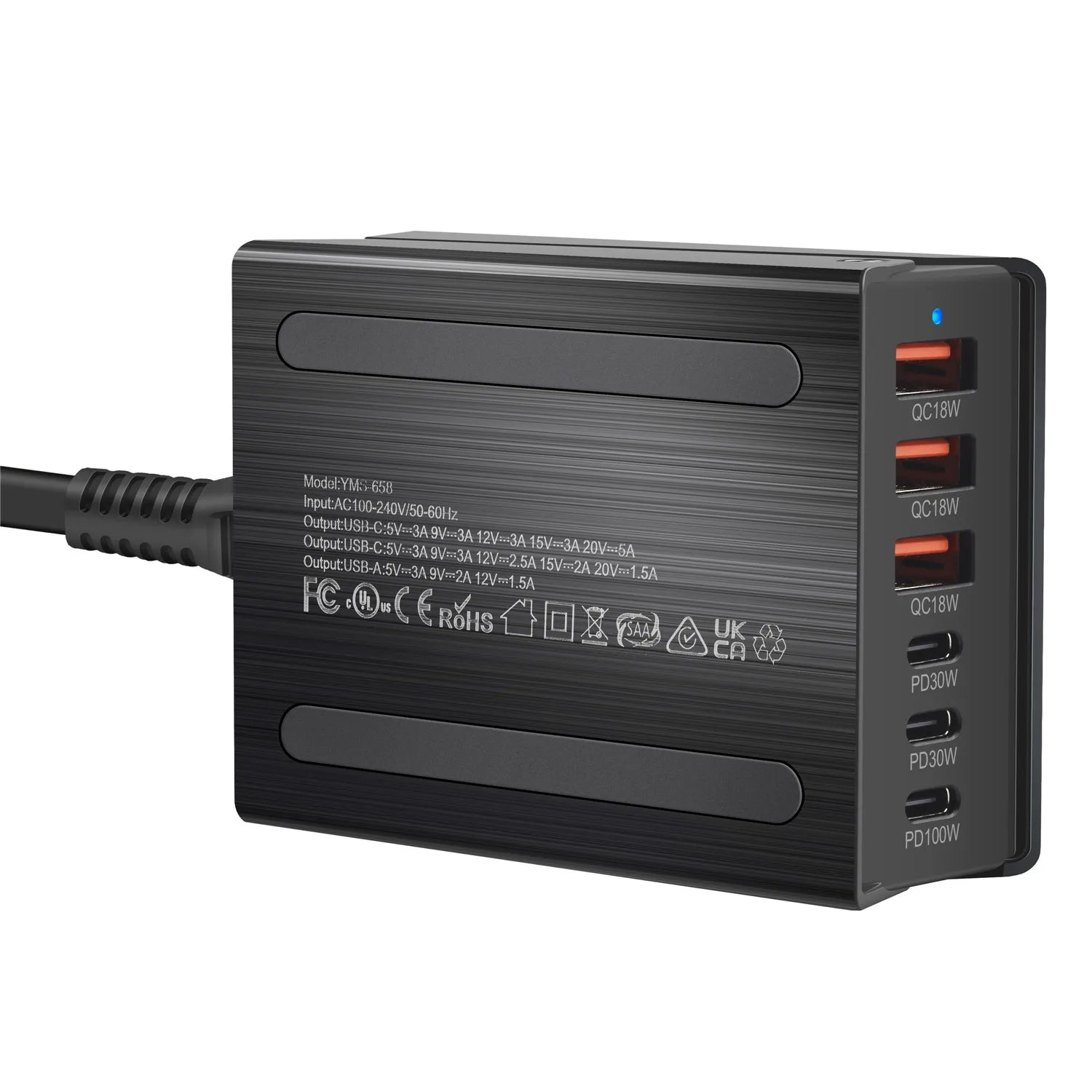 GAN's state-of-the-art USB-C fast charging station offers an impressive 200W of total power, allowing you to charge up to 6 devices simultaneously at full speed. Power Delivery (PD) technology ensures fast and efficient charging for smartphones, tablets, laptops and other USB-C devices.