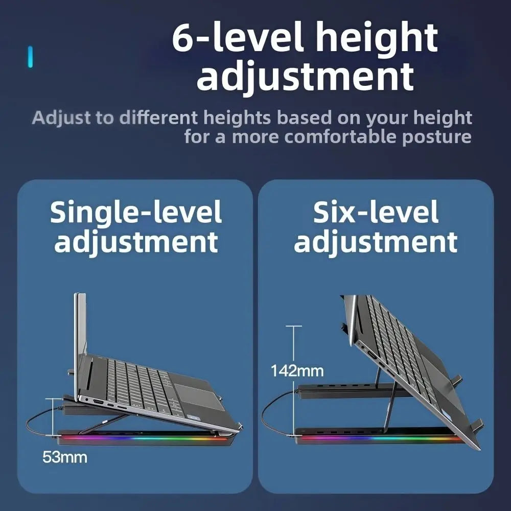 4-in-1 RGB Laptop-teline - Alumiininen Telakointiasema Jäähdytyksellä