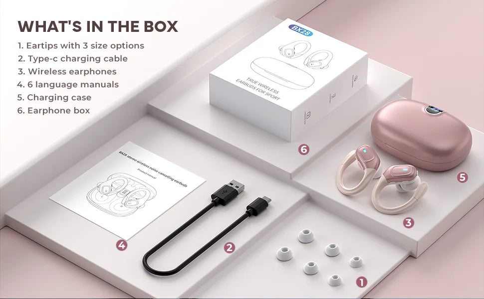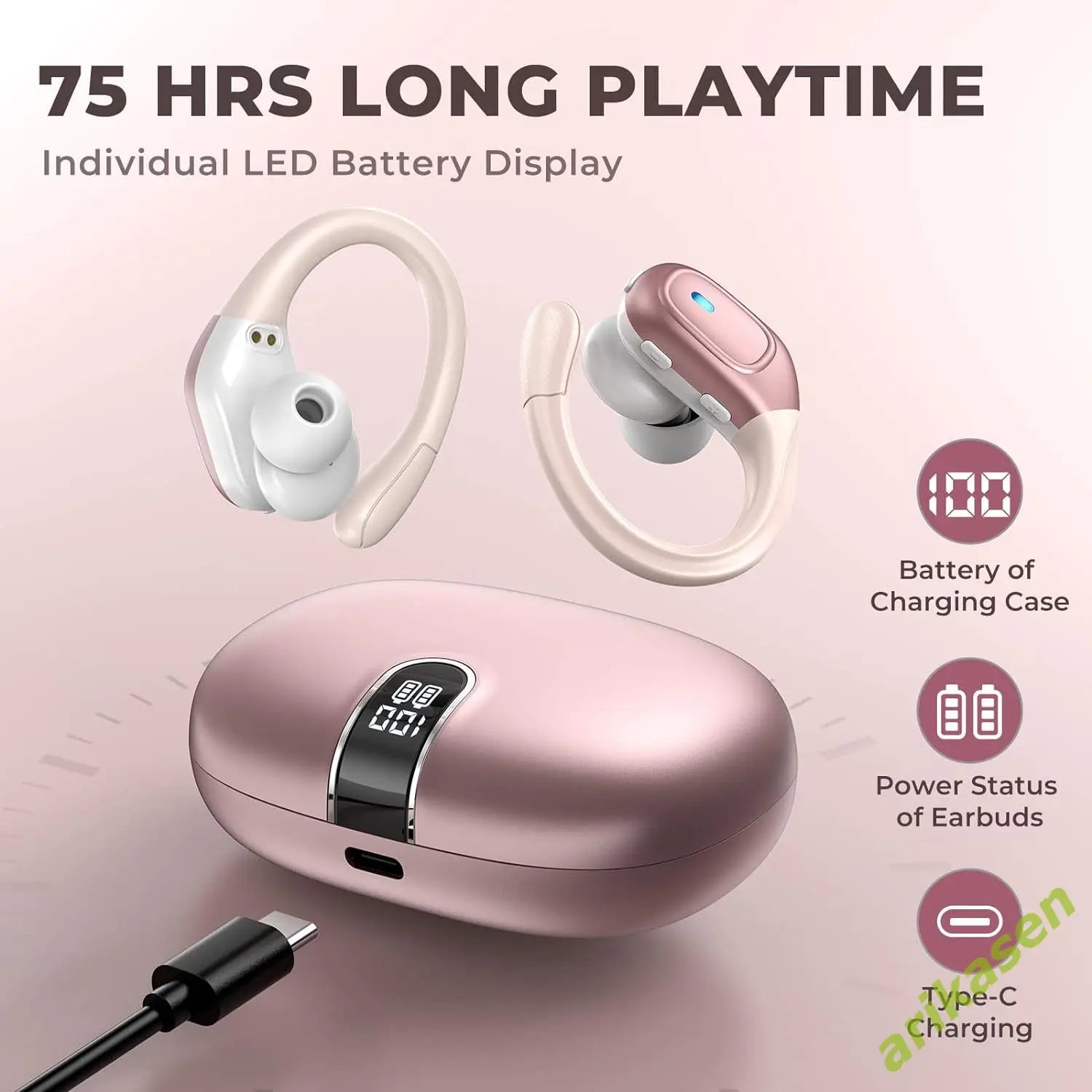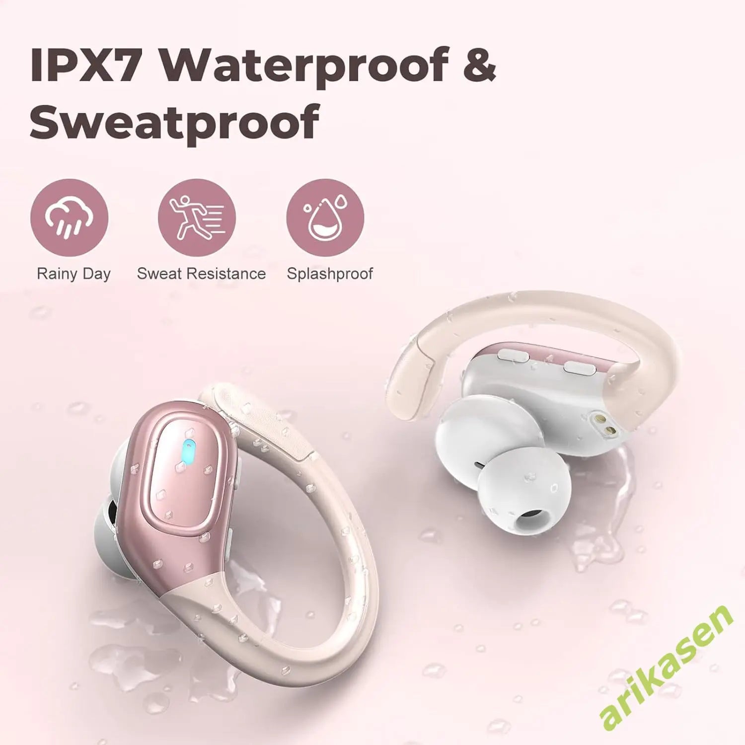 Nämä Bluetooth 5.3 -urheilukuulokkeet on suunniteltu aktiiviseen elämäntyyliin. IP7-vedenkestävyys, ENC-kohinanvaimennus, voimakkaat bassot ja turvallinen korvakoukku-muotoilu tekevät näistä kuulokkeista täydellisen valinnan kuntosalille, juoksuun, pyöräilyyn tai mihin tahansa urheiluun.