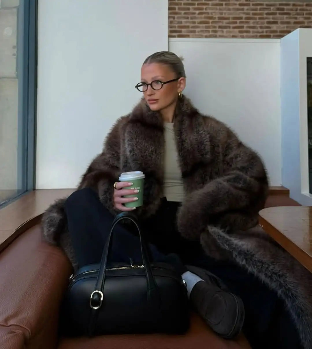 A long faux fur coat is the perfect choice for cold winter days. It covers the entire body, providing maximum warmth and protection from the wind. The long style also creates a dramatic and elegant look that will not go unnoticed. The perfect choice for a woman who wants to combine warmth and style!