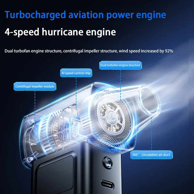 The Xiaomi Turbo Jet Blower is a highly efficient cordless air blower designed to remove dust and debris from electronics, keyboards, computers, cameras, and other sensitive devices. The brushless motor and a whopping 990,000 revolutions per minute ensure excellent cleaning performance.