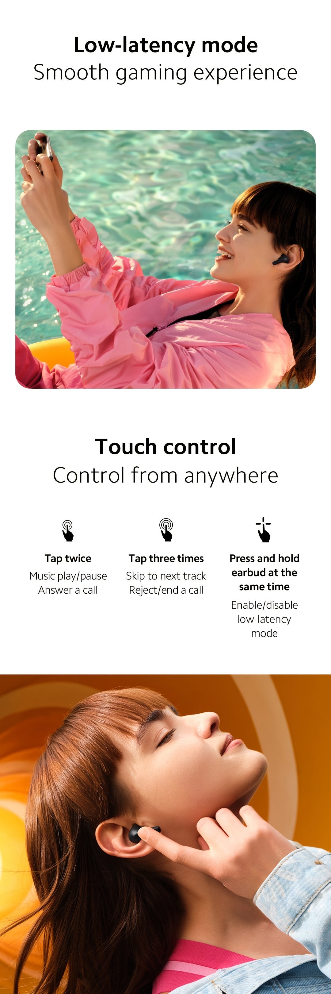 Intuitive touch controls let you control your music, answer calls, and activate your voice assistant with a single tap. No need to dig your phone out of your pocket!